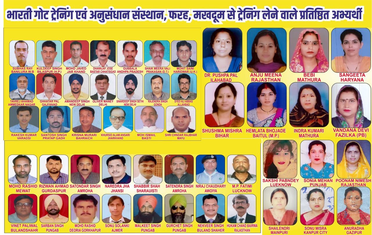 - जानलेवा बीमारियों के टीकों कि जानकारी, लगाने का तरीका सिखाना व बकरी जीवन चक्र में होने वाली कुल बीमारी व उनकी प्रभावी दवाओं की जानकारी